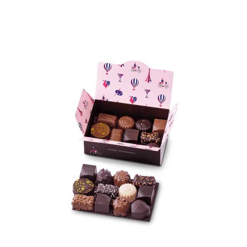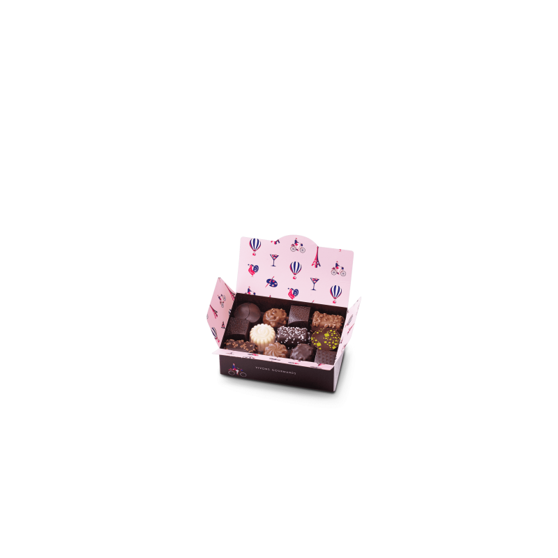 Assortiment de 22 chocolats fins ganaches et pralinés parmi les 33 recettes de notre gamme "Tellement Français"