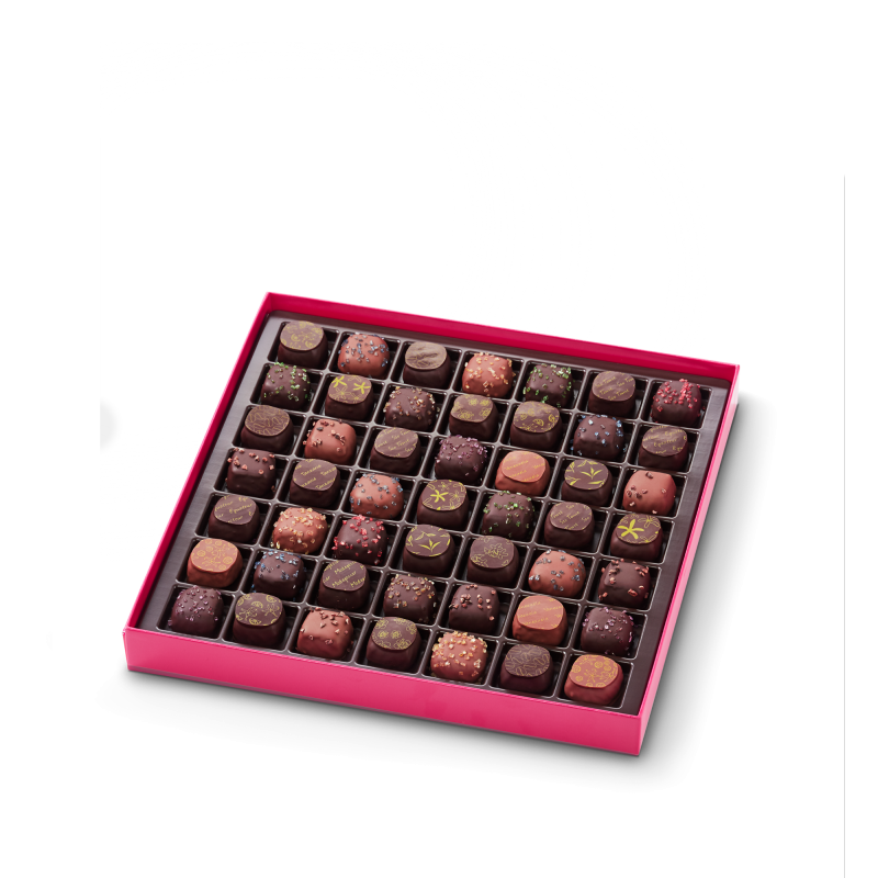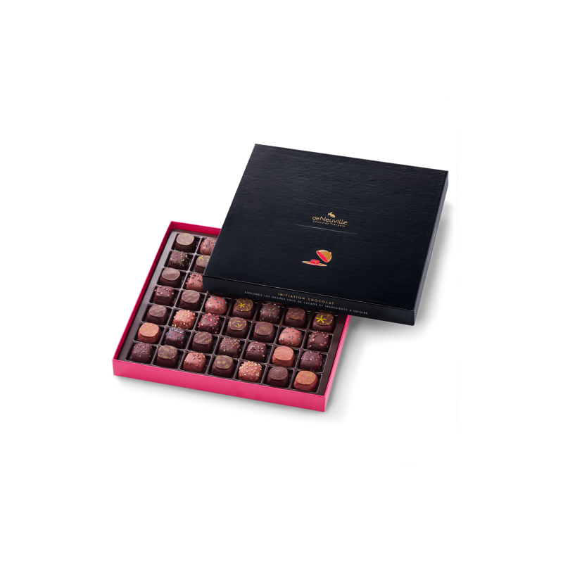 De Neuville vous propose une sélection de 49 palets aux recettes raffinées et originales. De savoureuses ganaches enrobées d’une fine couche de chocolat noir ou lait. Ces créations de Neuville sont issues de l'alliance parfaite des meilleurs crus de cacao et des ingrédients les plus fins, sélectionnés pour leur intensité aromatique. Une explosion de saveurs à chaque bouchée. Un coffret de chocolats idéal pour vos cadeaux d'affaires ou votre comité d'entreprise.